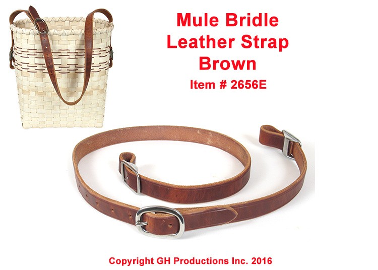 The color of the leather varies from light tan to dark brown; when you place your order we'll choose a color for you. Also available--Free Mule Skinner Basket Pattern, using the Mule Bridle Strap, for you to print. Thanks to Joanne Dunaway, friend and fellow Kentucky basket maker, and to Lynne Marrs Hammer Ferguson, Artist in Residence, Kentucky Museum at Western Kentucky University, for their inspiration in developing this pattern.