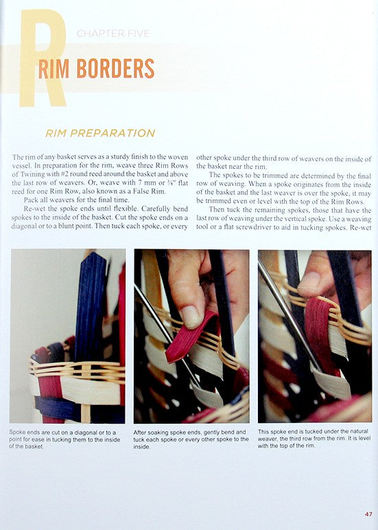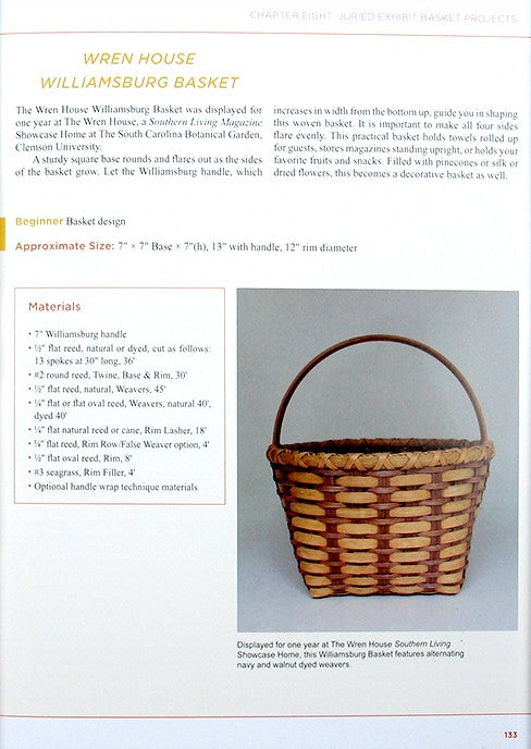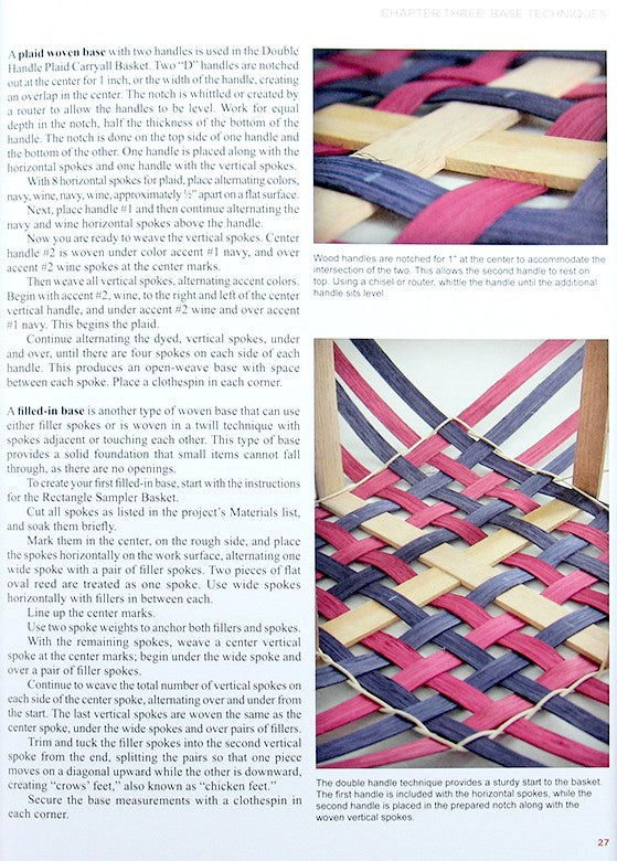 Traditional baskets are updated with new techniques, while contemporary patterns employ flat, flat oval, and round reed in plaids, twills, spiral, braids, arrows, diamonds, twining, waling, handle wraps, rim borders, and more.