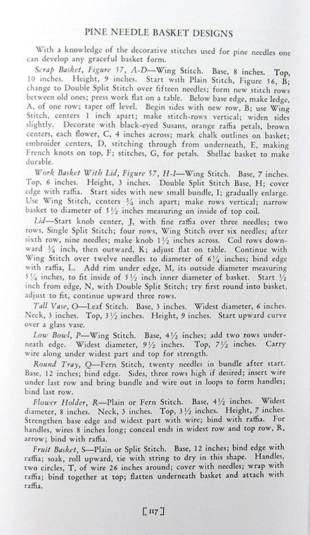 The chapters explain gathering and preparing both round and flat natural materials like leaves, roots, reeds, grasses, vines, shoots, willow, pine needles, bark, splints and more. Instructions for making borders, lids, handles and fasteners give many options.