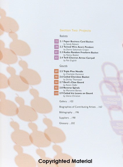 An ever-widening range of materials is being used by today's crafters to weave and coil baskets and to decorate gourds. Over 350 color images display the raw materials, techniques for their use, and final works of art created with them. Along with traditional materials such as reeds, white oak, ash, vines, plants, grasses, and bark, kudzu, grapevines, iris, sweetgrass, paper and wire provide new possibilities. Information is included on where to find natural materials, and how to collect and prepare them for weaving. Exciting uses for alternative materials are also explored, including wire, mesh, and recycled materials. Tutorials and projects from well-known weavers and gourd artists, along with an extensive list of resources, make this book a must have for weavers, crafters, and anyone with a passion for handcrafted fiber art. Author, Marianne Barnes.
