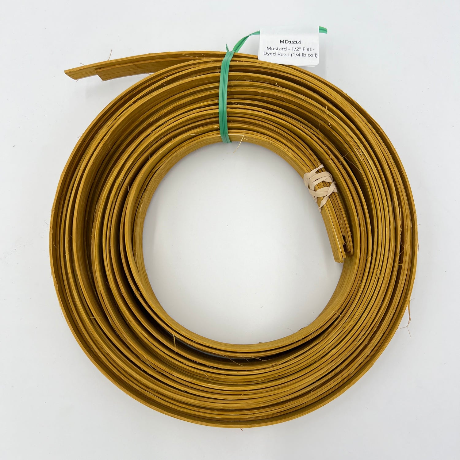 Mustard - 1/2" Flat - Dyed Reed (1/4 lb coil) - Mustard / 1/2 inch Reed / 1/4 lb is backordered and will ship as soon as it is back in stock.