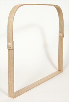 Weave the wooden Round Top Swing D Handle into your basket as you would any regular D Handle. The particular advantage of this style is that the top section of the handle swings on wooden pegs allowing you to position the handle either straight up or laying to the side. Use singularly or in pairs. Base measurement is approximately 12"; height 11". From the point where the handle swings to the top of the handle 5"; from the point where the handle swings to the bottom of the handle 6".