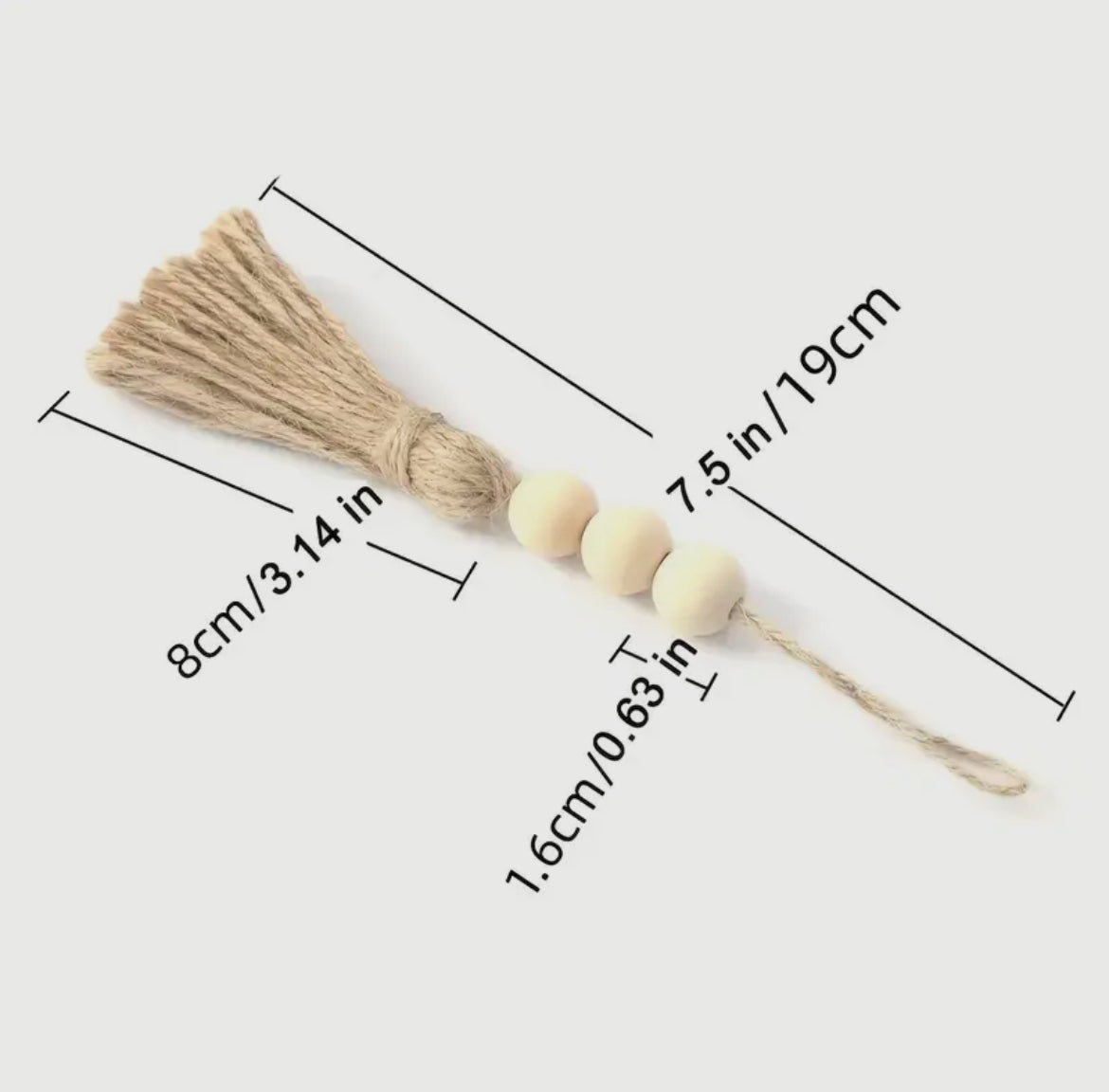 Beads - 0.63'' inch Total length - 7.5 Inch Jute Tassel - 3.14''