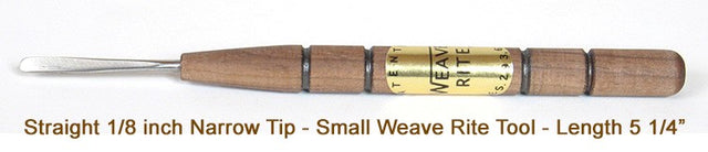 For use with your finer materials and smaller-scale work, this narrow tip straight tool is perfect. Wooden handle, stainless steel tip, overall length 5 1/4". (Narrow tip is 1/8" wide.) Weave Rite tools are the best tools available.