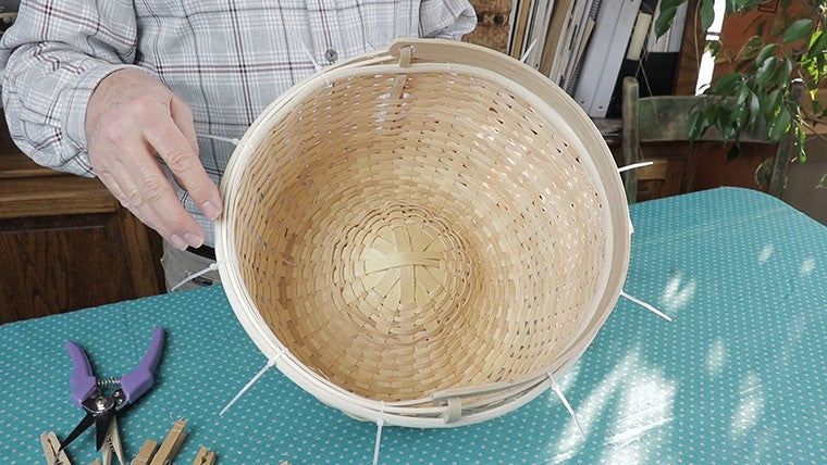 Join Scott in this basket weaving video as he shows you how to attach rims to a basket. Video includes: measuring the rims, carving the scarf joints, and using cable ties when attaching the rims.