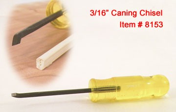 Our Caning Chisel, 3/16" wide, is for removing old spline before replacing a seat with cane webbing. An invaluable tool.