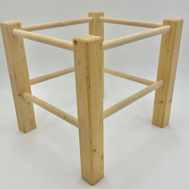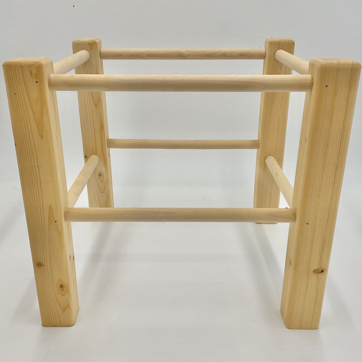 This sturdy pine foot stool frame will not disappoint. The hardwood is unfinished so that you can stain it to your color preference.