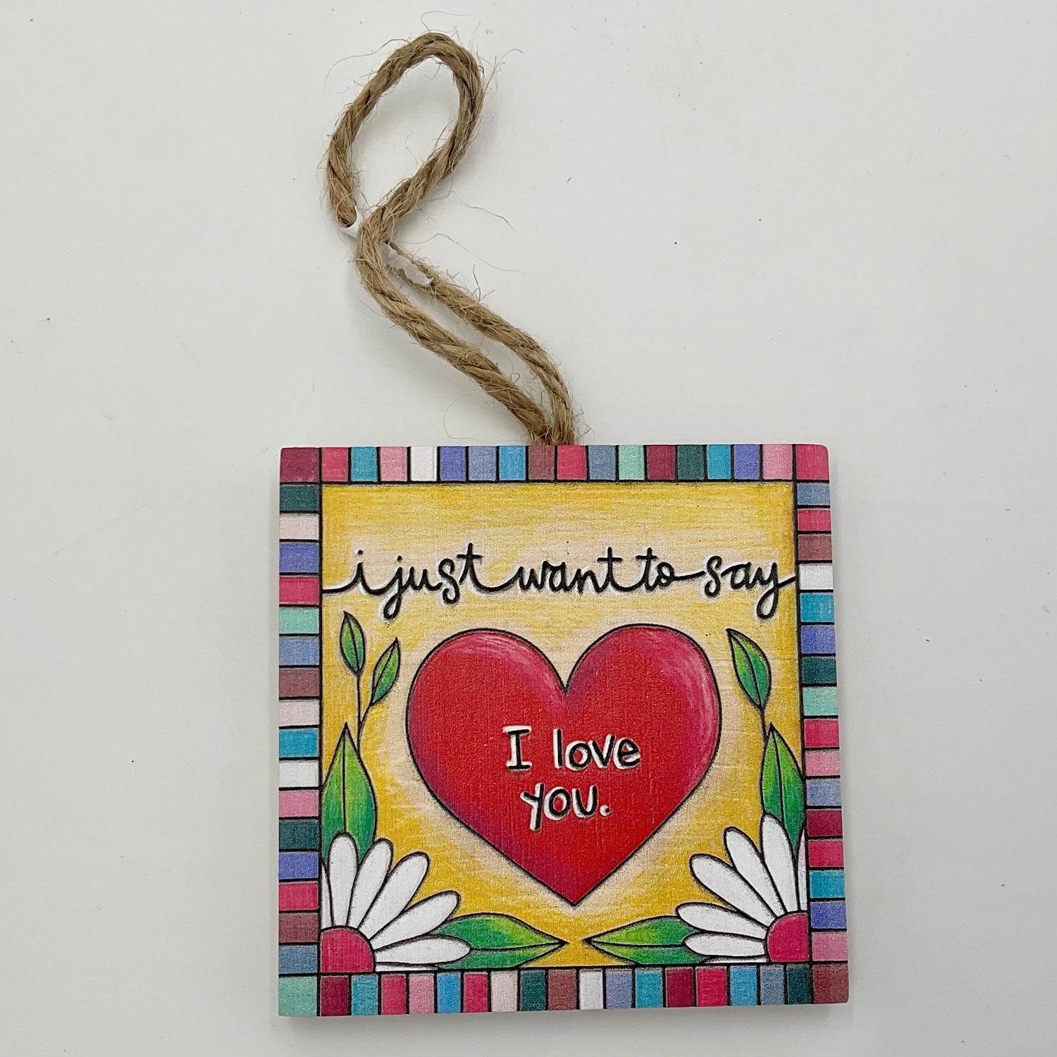 This cute 3 x 3 basket embellishment reads "I Just Want to Say I Love You".