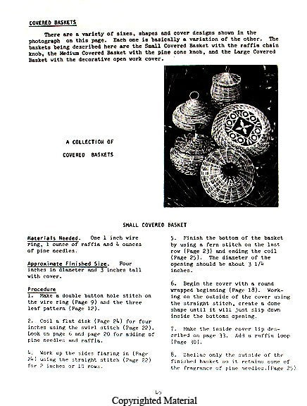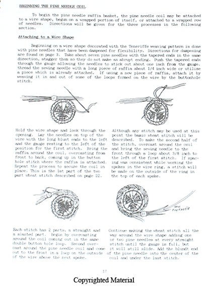 If you're ready to try some simple and basic baskets using pine needles and raffia, this is the book for you. Pine Needle Raffia, a beginner's book, illustrates designs and stitching patterns and gives information on preparing and using pine needles. Author: Jeannie McFarland.