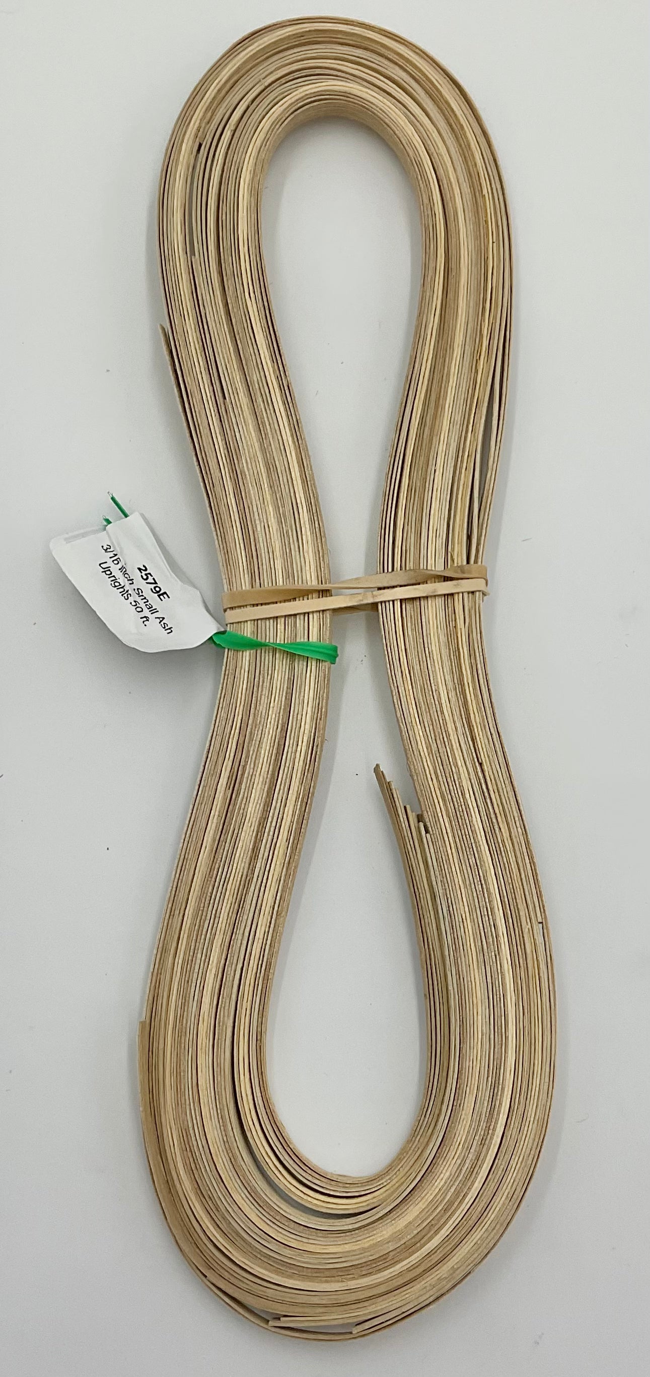 Create beautiful small baskets (3 inches and larger) with this premium brown ash material! Splints are satin smooth on both sides, especially prepared for refined work. This product is medium weight with a satin finish. Ash is a natural material, cut from different parts of the whole ash log, and colors of splint vary from light to a bit darker. Smooth and flexible, medium weight, weavers are thinner than uprights.