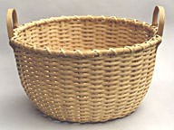 Author Dianne Stanton describes her 3/4 Bushel Yankee Field Basket Pattern, "I've always enjoyed making spoke-bottom, or "apple" baskets. You'll find this one easy to weave and large enough for lots of storage -- the mittens and hats, kindling or laundry. The ideal weaver for the sides is a heavy (thick) 7mm. You can carve your own handles or use purchased ones as I have. I've also included my recipe for tea dye, a clear natural color available at any grocery store." Size: 10" deep and 17" in diameter.