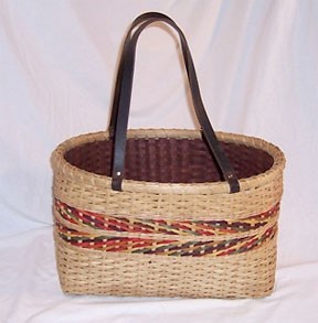A beautiful tote that could easily be carried as a large purse. Double walled with two leather handles, this basket has multicolor bands of randing weave--adding flair to Annetta Kraayeveld's design. The finished size is 8" wide x 15" long x 11" high. Intermediate weaving level.