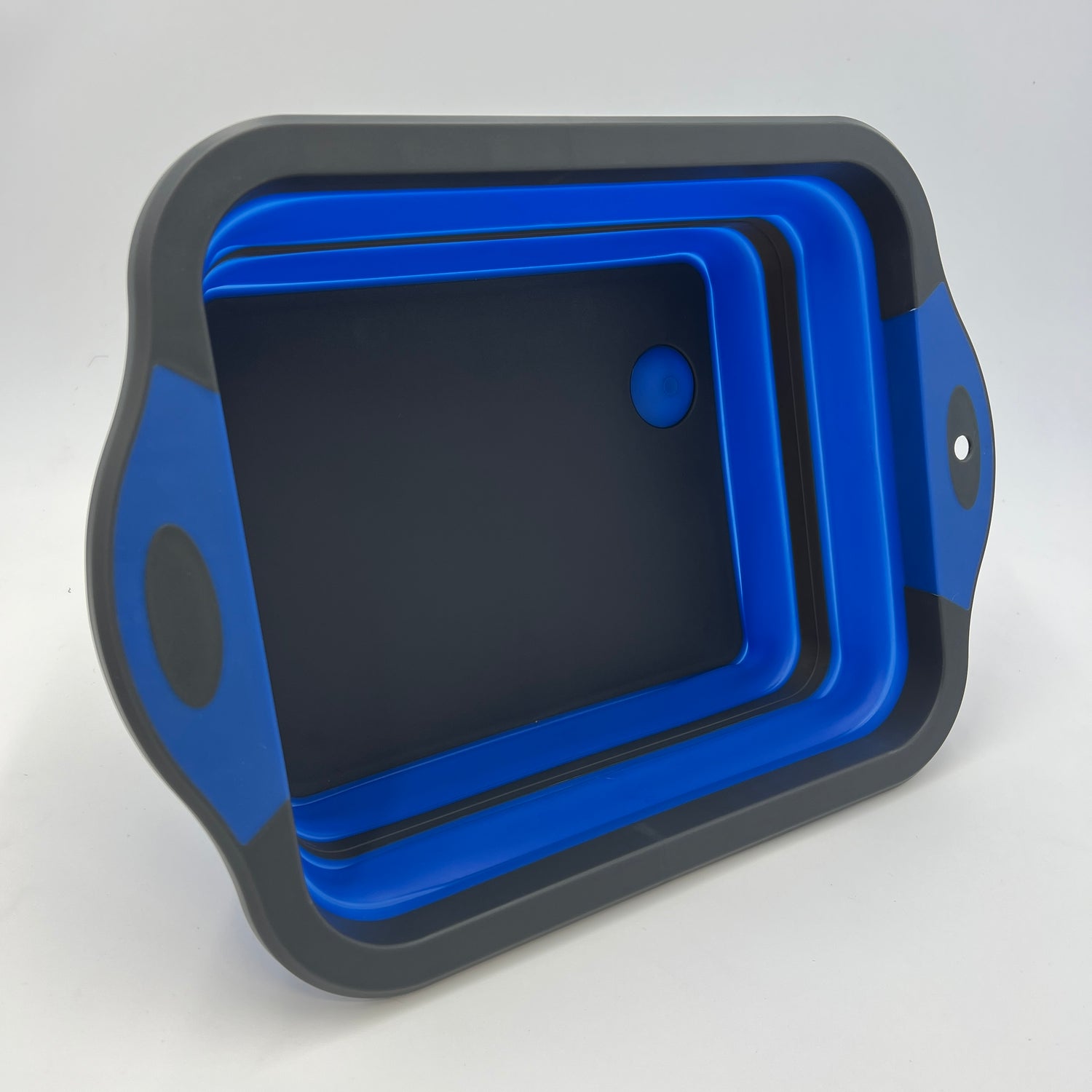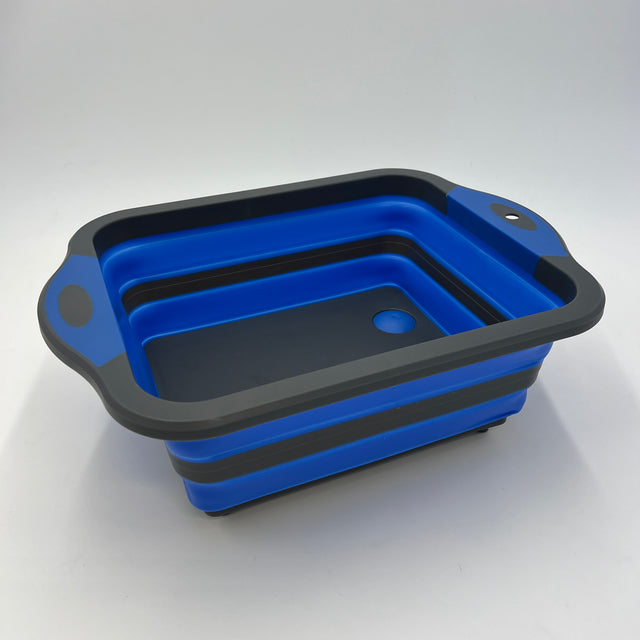 PRODUCT DETAILS - Materials: PP/TPR (Plastic/Plastic Rubber). Dimensions: (L) 14.75" x (W) 10.75" x (H) 5"; Collapsed: (H) 2". Capacity: 10-Liters. Color: Blue.