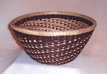 An intermediate-level basket project, the Dakota is woven on a 6 inch double-slotted wooden base, weaving the inside basket first followed by the outside basket. Stakes are joined at the top and rimmed together. Quite a unique basket. Finished size: 12 inches diameter by 6 inches tall. Another great pattern by Annetta Kraayeveld.