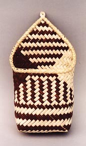 Author Dianne Stanton was inspired to create this wall pouch after seeing a similar basket in Japan. Note the rectangular base as well as horizontal and vertical twill sections. Definitely an intermediate-level project. Basket size: 6" x 3" x 11" tall.