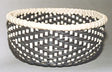 From author Dianne Stanton: "The inspiration for this basket was an antique, spoked construction, Indian basket that Judy Drury brought to the 1990 Summer Retreat of the Northeast Basketmakers Guild. This unusual basket was made of black ash and had a cover and handle. Both the cover and the sides were woven in a twill pattern that produced two diamonds. This version is a double-bottom, shallow bowl. The "diamond duet " pattern is woven on the side and it is completed with a folded and lashed Shaker-style rim. The pattern will work on any basket if the number of total spoke ends can be divided by 8 and the result is an even number - 64 total ends divided by 8 = 8, an even number." Basket measures 10" in diameter by 5" deep.