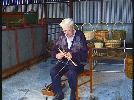 Bill Sinnott is a 3rd generation basketmaker from County Laois and has been making baskets for over 60 years. On this DVD he shows how he makes a shopping basket in white willow. Sinnott is a member of the Irish Basketmakers Association and is highly regarded for his unique style of basketmaking. Bill talkes about the local co-op and selling the baskets when he was young.