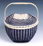 The basket is basic: "... a 9 x 9 spokes chase-woven cathead basket. The cover is a 17 x 17 spokes quatrefoil that is woven flat." The cover offers you a challenge and is attractive woven in all natural or with either the spokes or weavers of dyed (or smoked) material. Size: 12" diameter x 13" deep (including the handle). Author: Dianne Stanton