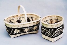 While visiting the Basket Festival in Lichtenfels, Germany and a Museum in Michelau, Dianne Stanton saw many unusual and interesting baskets and was inspired to create the 2 baskets in this pattern. Square to round size 8 inches high x 8 inches diameter. Rectangular market basket measures 15 inches long x 9 inches deep x 7 inches high, not including the 8 in. handle.