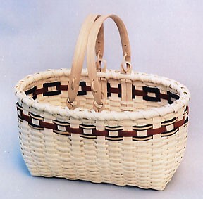 Pattern created by Dianne Stanton for students to hold their knitting supplies--this is the perfect fit! Use all natural material or add a design with dyed reed. Basket has a filled base basket and is suitable for all levels of weavers. Size: 15" long x 9.5" wide x 8" deep; 14" tall including the pair of 10" Swing Handles. (We recommend our 10" Oak Swing Handles, Item 5010.)