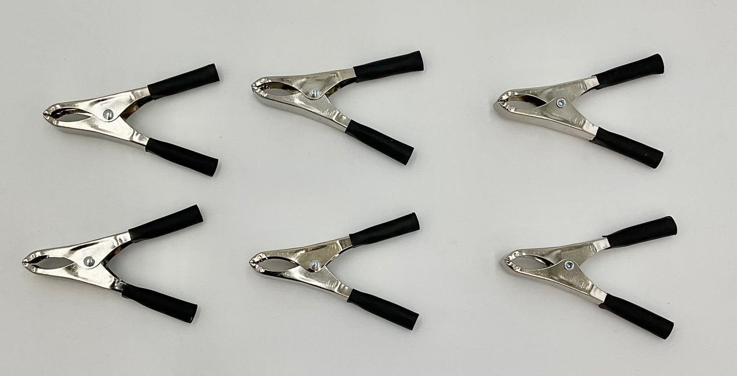 The unique oval-shaped ends are perfect for clamping basket rims. Hippo clamps are 3.25" long and open 1" wide. Vinyl covered clamp handles offer a comfortable grip. Package of 6 clamps.
