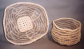 Neolithic braid is the construction technique in this unusual basket. With this technique, the spokes alternately become the weavers then spokes. A very versatile technique; it can be used for creating either a symmetrical or sculptural basket. Author: Flo Hoppe