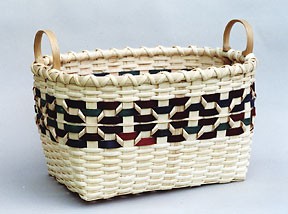 Jewels it is! Dyed reed combines with pretty 3/8" ash curls for the design of this 12" long x 7.5" wide x 9" deep basket--it's the perfect size to hold all those catalogs! A simple yet elegant basket that you can weave up in the colors of your choice. Pattern by Dianne Stanton.