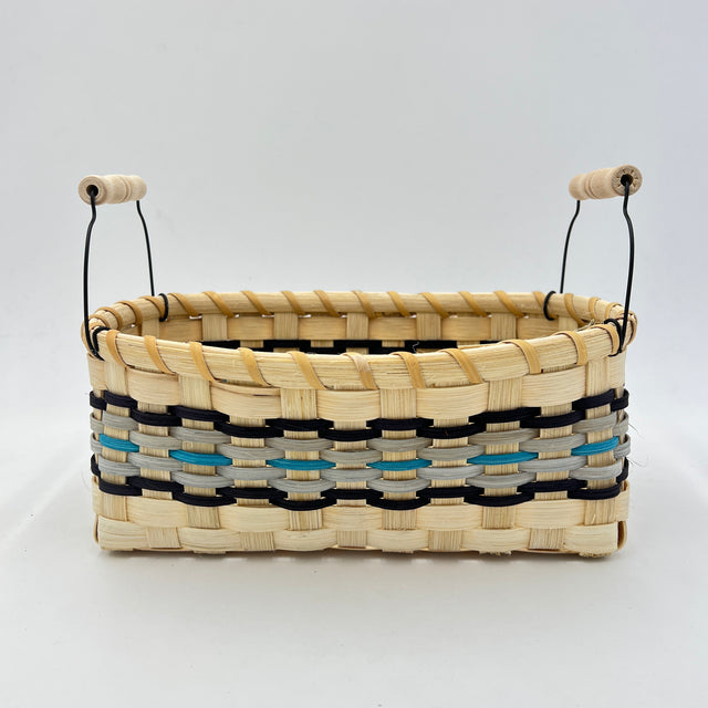 An easy and fun basket to make, Joan's Bread Basket is perfect for the beginner. The basket measures approximately 6" wide, 12" long and 5" tall and features a 6" black wire handle with eyes. Author: Basket Maker's Supply