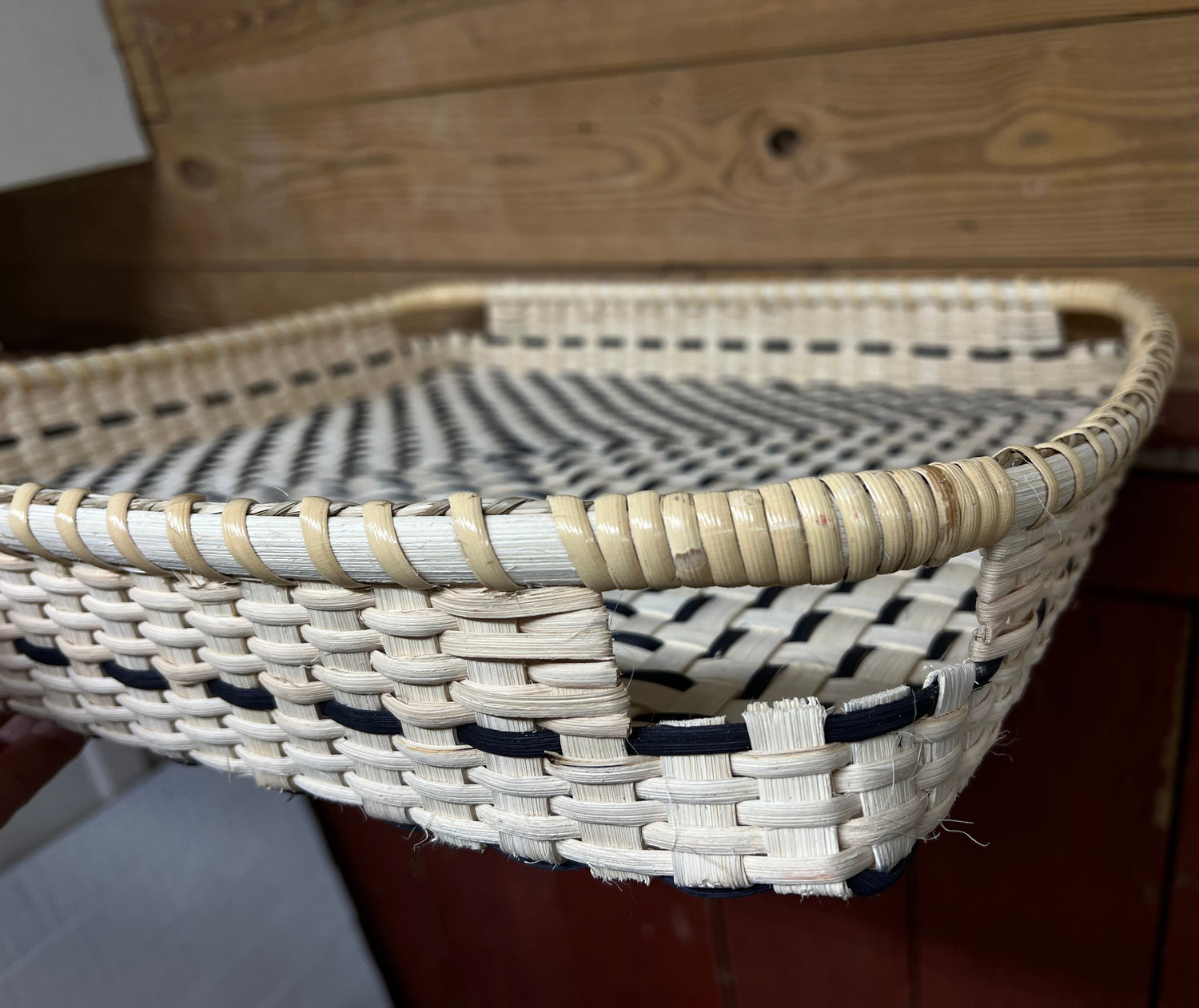This stunning basket is extra special because of the story behind it. According to Google, "labyrinths are used world-wide to quiet the mind, calm anxieties, recover balance in life, enhance creativity and encourage meditation, insight, self-reflection, and stress reduction." This basket is born out of that spirit and features an incredible weaving technique and pattern, which came from fellow basket maker, teacher, friend and mentor Anne Bowers. Her inspiration and collaboration make this basket extra special. Featuring a stunning pattern, this large basket is ready to inspire!
