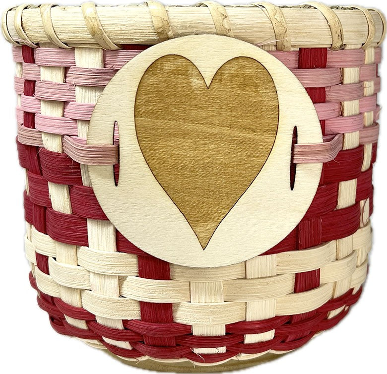 The Little Sweetie Basket Pattern uses a 5" Round Slotted Wooden Base and Natural, Cherry and Quartz reed. A perfect basket to use for decorating or giving a gift to let someone know they are a Sweetie!