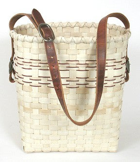 The Mule Skinner Basket is a great intermediate-level project featuring shadow weave with natural and dyed reed, a filled bottom, the beautiful bridle handle, and a double lashed rim. Instructions included. Base: 7 inches x 11 inches; height: 14 inches. With the adjustable leather mule bridle, made in Allen County, Kentucky, carrying your favorite gear is easy and comfortable. Hang it on your wagon or put it to work for your lifestyle today. Thanks to Joanne Dunaway, friend and fellow Kentucky basket maker, and to Lynne Marrs Hammer Ferguson, Artist in Residence, Kentucky Museum at Western Kentucky University, for their inspiration in developing this pattern.