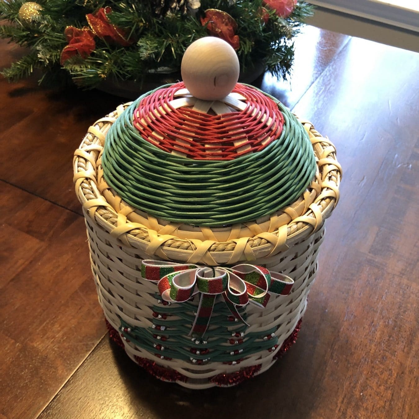 This festive Oh Christmas Tree Basket Kit is perfect for displaying with your holiday decorations. The woven Christmas tree pattern adds a touch of charm, while the colorful and unique lid adds a pop of color to your home. Get ready to spread some holiday cheer with this must-have basket.