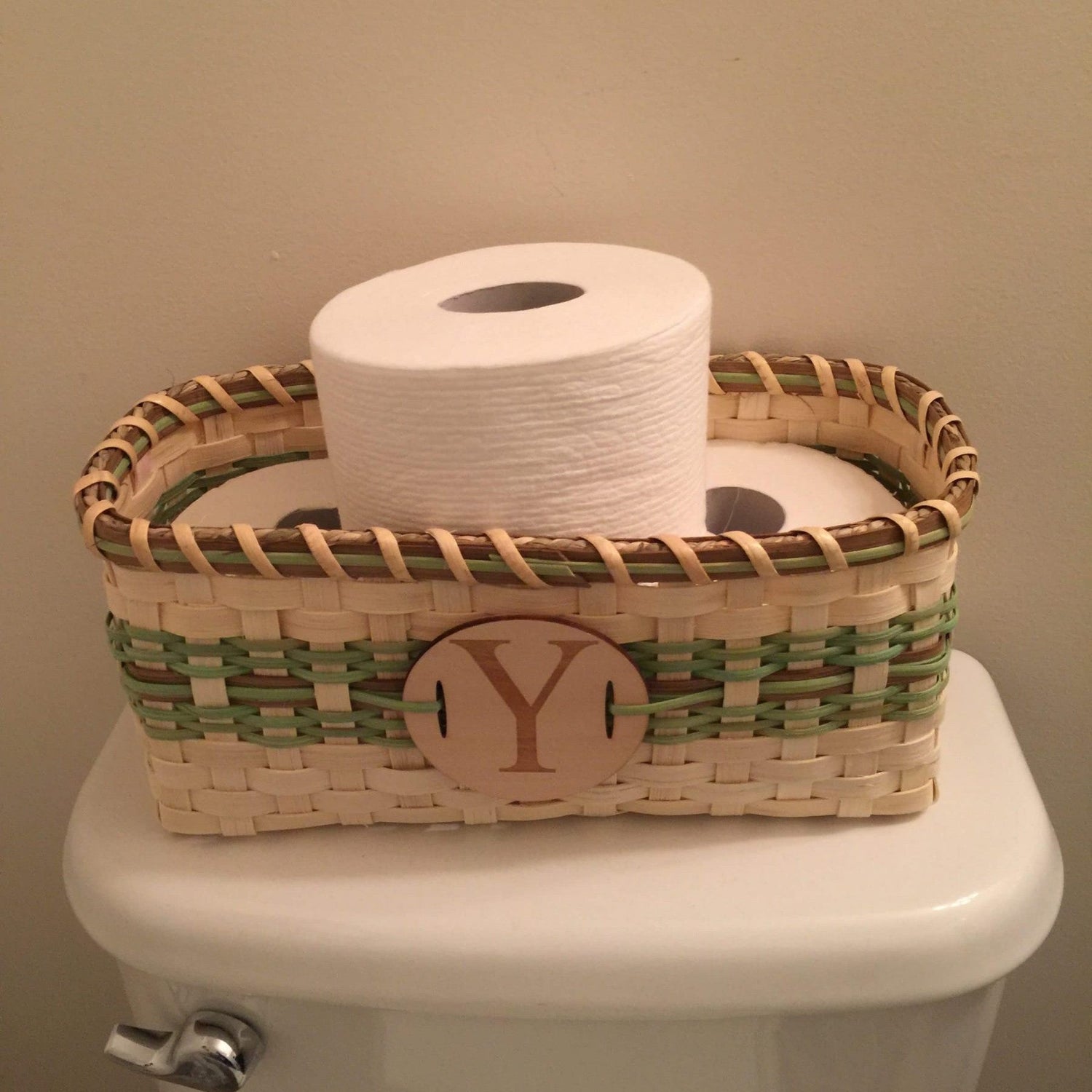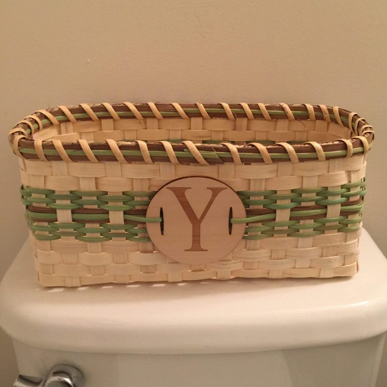 This is a great basket for many purposes, but I designed it for the back of a commode to hold TP or bathroom goods. It comes in many different colors and can have a wooden disk of your choice added on for an extra $5.