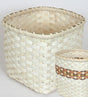 You’ll be inspired to make several of these--leave them all natural or add bands of color. Start with an 8 inch slotted base and a few rows of twining on 1/2 inch flat stakes. Weave stop-start rows and finish off with 5/8 inch flat oval rims. What could be easier? Shelly’s Basket was designed ''out of necessity'' as a waste basket by a friend who enjoys basket making and is a ribbon-winning needleworker from Northern Illinois. She hones her skills at Basketcases, a wonderfully unique quilt shop and basket studio in Clare. Thanks for sharing a great basket, Shelly! Base: 8 inches square, Height 10 - 12 inches, Circumference 36 inches.