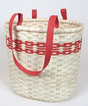 Show your Spirit! Carry this tall, striking basket to your favorite sports team's tailgating events, to the pool, to crafting classes or anywhere you are hauling a load. The 8" x 12" oblong slotted base adds to the durability and the Shaker Tape Handles are flexible and strong. Made of natural and dyed reed material. A special thanks to Lynne Marrs Hammer Ferguson, Artist In Residence, Kentucky Museum / Western Kentucky University, for her inspiration in developing this pattern. Size at top: 11" x 15"; 15" tall. Pattern is free for you to print from our website--copy the patterns and share with your friends.