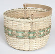 This 10" diameter basket is the perfect answer; it's pretty, it's practical and you'll use it often whether in the garden or indoors. Starting with an 8" round slotted base and using 5/8" flat for the spokes, this easy-to-make Garden Basket has accent rows of #0 seagrass, braided seagrass and moss green dyed reed. It's finished with a beautiful handcrafted 10" White Oak Swing Handle with Ears.