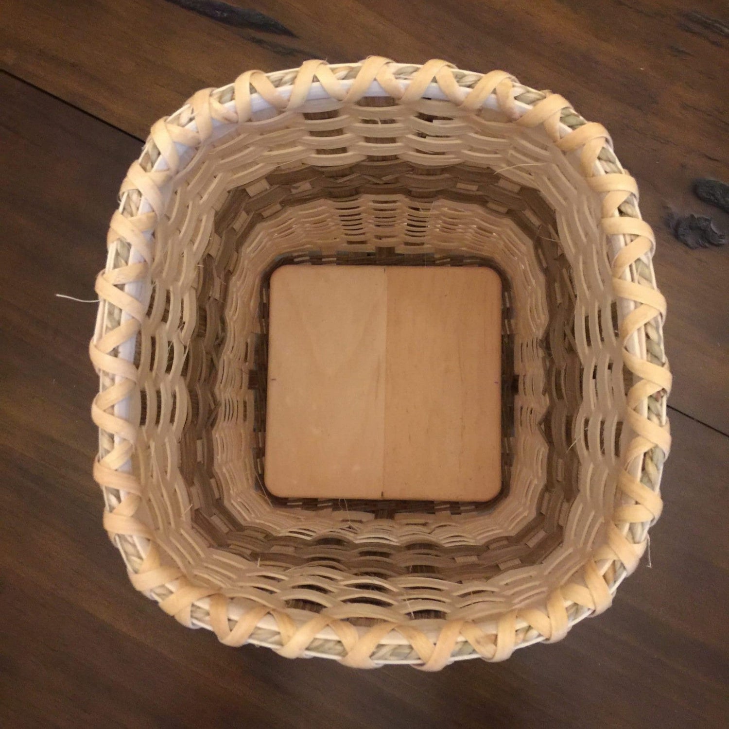 This basket has an 6″x6″ square wooden base and stands 12″ tall as it so beautifully displays the cross.