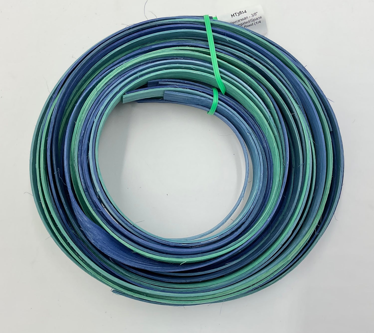 Mediterranean - 3/8" Flat - Variegated/Space Dyed Dyed Reed (1/4 lb coil) - Mediterranean / 3/8 inch Reed / 1/4 lb is backordered and will ship as soon as it is back in stock.
