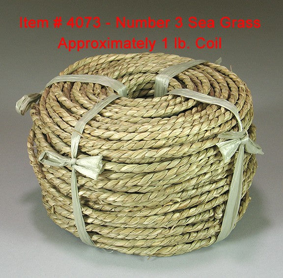 SeaGrass is used for chair seats and for accents or rim fillers in your baskets. No. 3 Sea Grass measures approximately 4.5 - 5mm diameter. We recommend 2.5 lbs. for an average (14" x 14") chair seat. This coil contains approximately 115 feet. (Approx. 1 lb.)