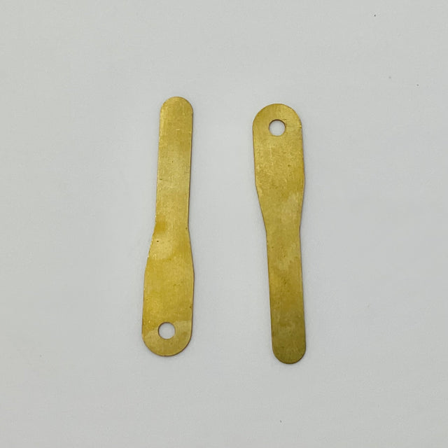 Weave the brass ears into your basket and pin them in place (pin through the rims and ears). Attach your slotted Nantucket handle by drilling holes in the handle and then inserting copper rivets through the handle and ears. Ears are 1/4" wide at the base and 3/8" wide at the widest point. Overall length: 2". Hole size: 1/8" diameter.