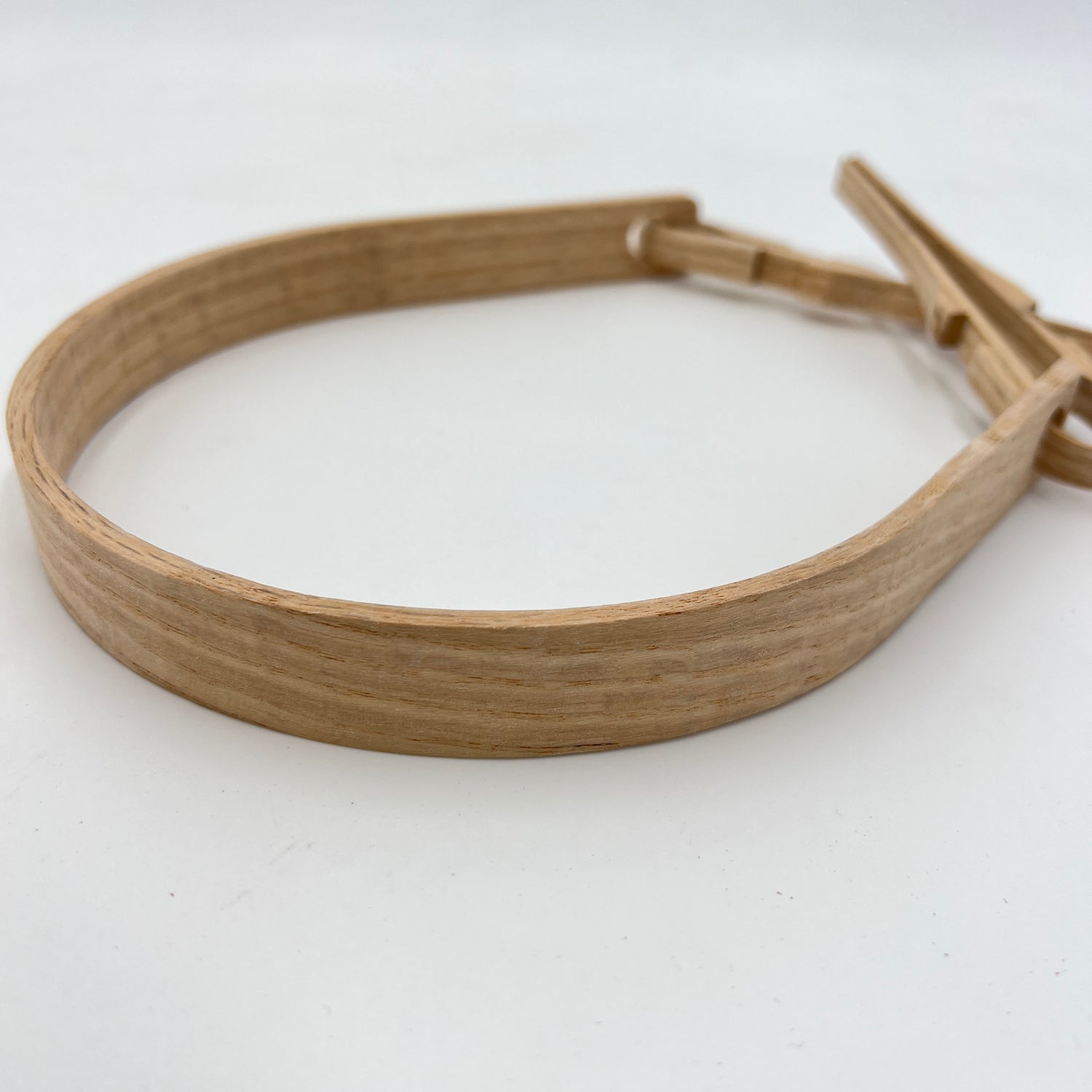Great Handles, especially where you want to add variety to your favorite baskets. Beautiful White Oak Swing Handles with Notched Ears are simple to use. (6" Swing Handle fits a basket 5 - 6" diameter and measures 11 1/4" tip to tip; ear notches are cut to accept 3/8" rim material.) Just slide the smoothly tapered ends of the handcrafted ears into your basket, place your rims into the notches and lash the rims together. With a little imagination you'll find all kinds of baskets that adapt well to Swing Handles.