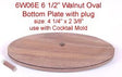 Each smoothly-finished bottom is handcrafted of solid walnut to fit our molds; walnut plug included. (NOTE: A 6.5" oval bottom plate fits our 6.5" Cocktail oval mold). Size of plate: 4 1/4" x 2 3/8".