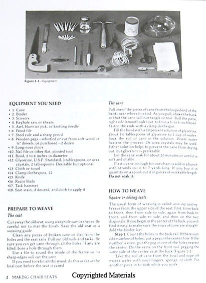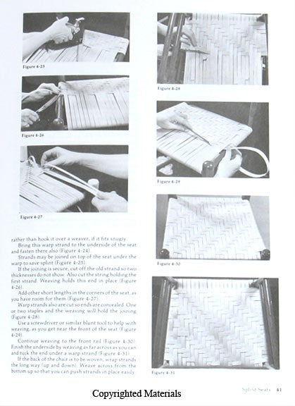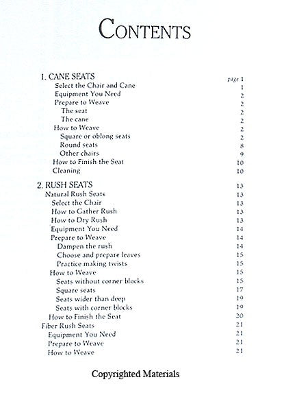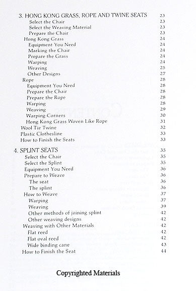 All aspects of the subject are considered — from selecting materials (including how to gather and dry such fibers as rush) to preparing the chair, equipment needed for various weaving processes, how to warp and weave, and ultimately, how to finish the seat.